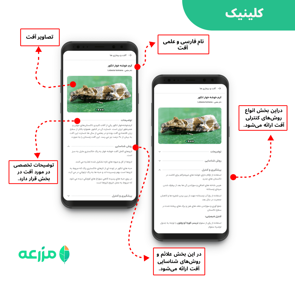 - هرس اصولی جهت جلوگیری از تجمع شاخههای اضافی و ایجاد محیط مناسب برای فعالیت آفت.