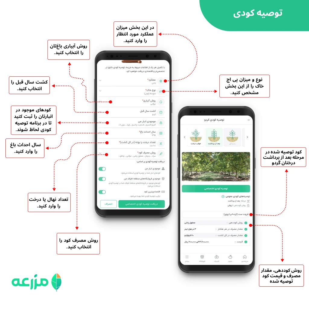 با استفاده از بخش توصیه کودی اختصاصی در اپلیکیشن مزرعه، می‌توانید براساس نوع محصول، شرایط خاک، میزان شوری، روش آبیاری و همچنین کودهای ثبت‌شده در انبار کشاورز، برنامه‌ای دقیق و شخصی‌سازی‌شده دریافت کنید. این برنامه با هدف تقویت ریشه و افزایش مقاومت گیاه طراحی شده است.