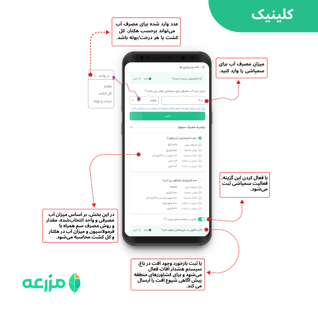 برای انتخاب دقیق سم، تعیین دوز مناسب و زمان مصرف مؤثر جهت مقابله با کرم سفید ریشه، به بخش کلینیک مزرعه مراجعه کنید.
