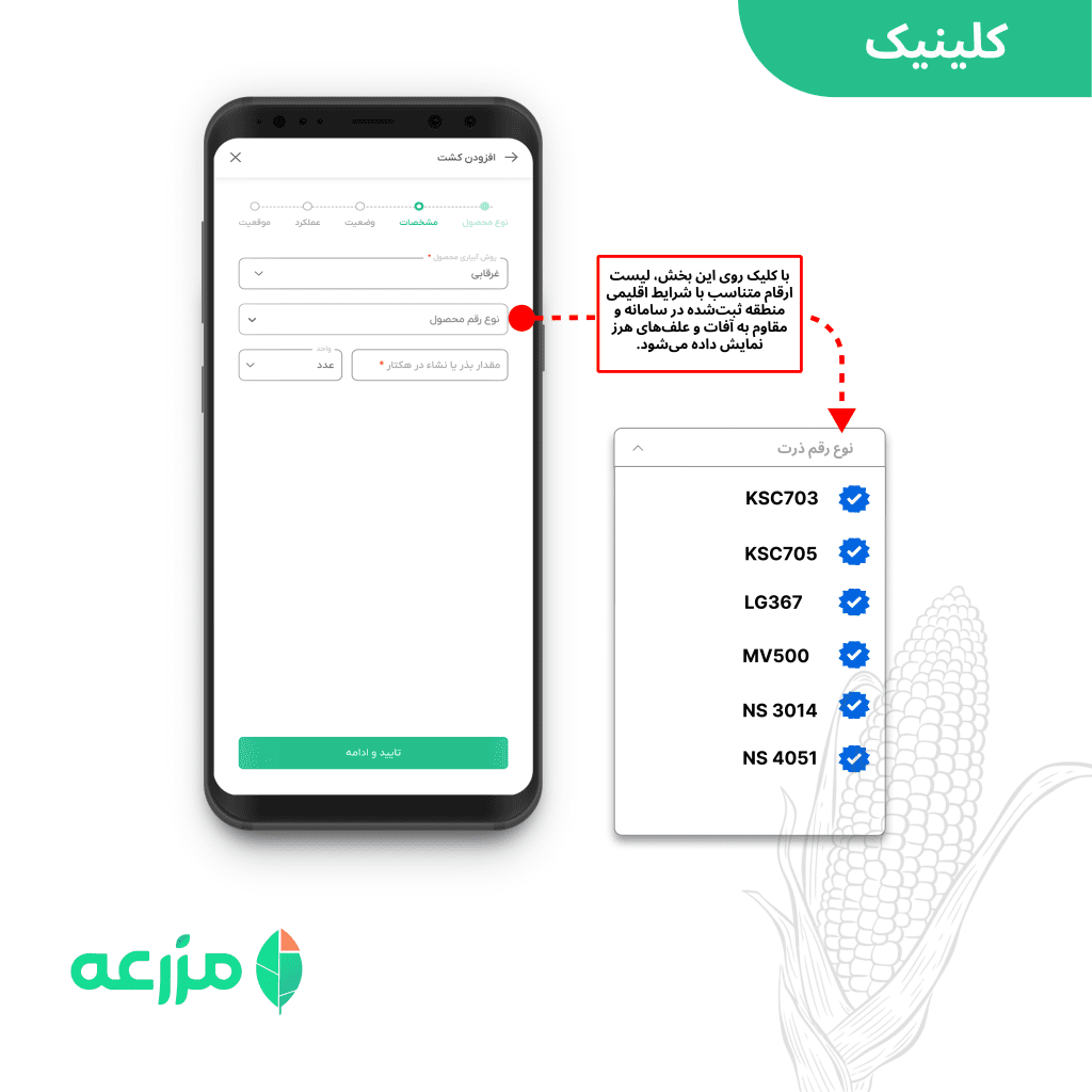 متناسب با کشت و منطقه میتوانید رقم مقاوم و پیشنهادی را هنگام ثبت کشت در سامانه مزرعه انتخاب کنید.